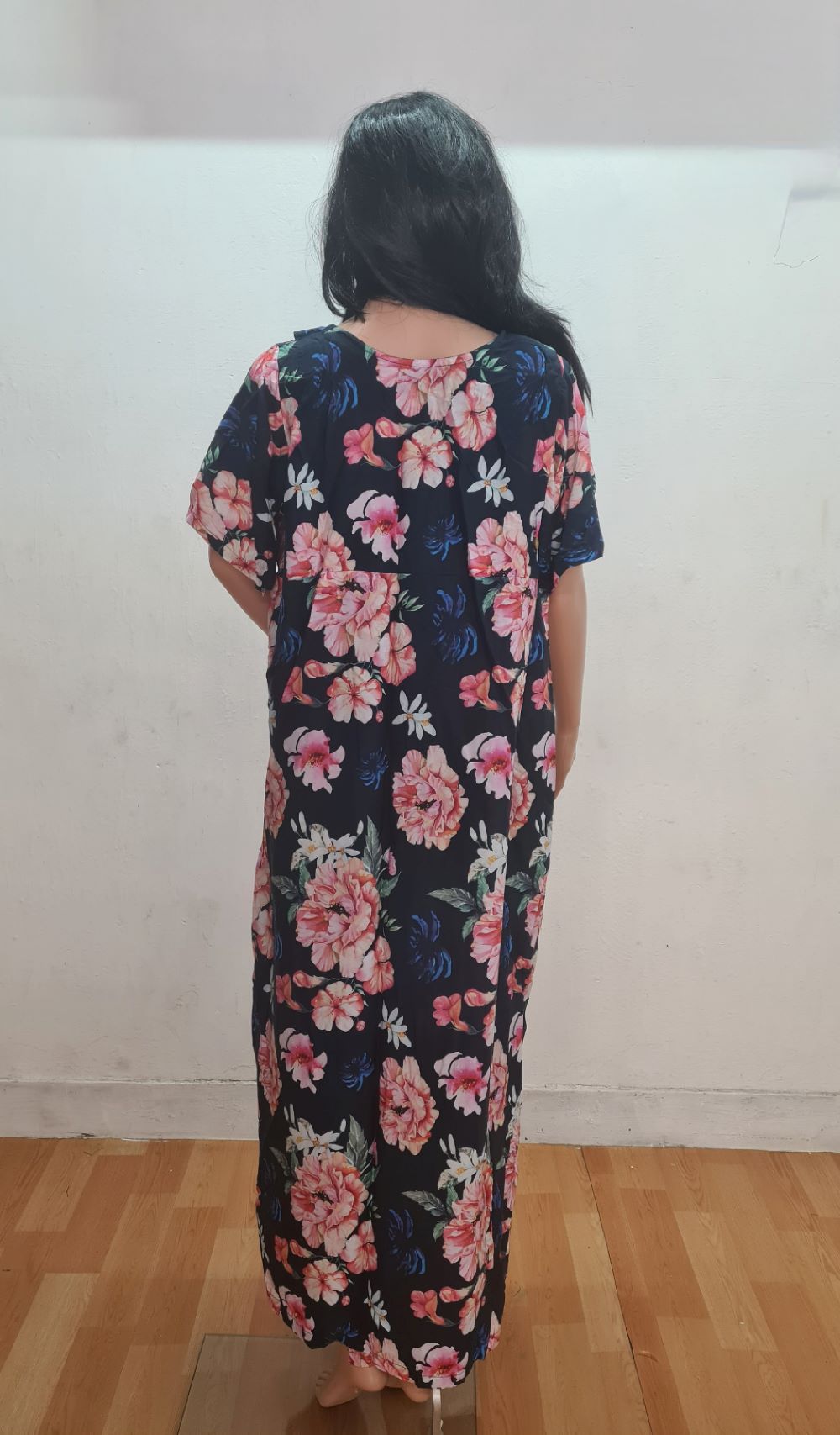 Our newest women's hospital gowns for sale are Snap Back Hospital Nightgowns, designed comfy for sleeping and pretty for lounging. These pretty open back hospital nighties feature a gathered yoke which ensures a roomy fit. The full back overlap of this adaptive sleep gown provides complete comfort and discretion unlike traditional tie back hospital nightgowns. velcro closures are placed on the shoulders of these pretty patient hospital gowns to avoid pressure points when sitting or reclining. Full back overlap with velcro at each shoulder. These pretty hospital gowns by The Adaptive Stores are made of quality machine washable soft cotton interlock (100% cotton). Comfortable raglan sleeves. These back open adaptive hospital nightdresses are terrific for elderly/seniors who are disabled or wheelchair dependent.